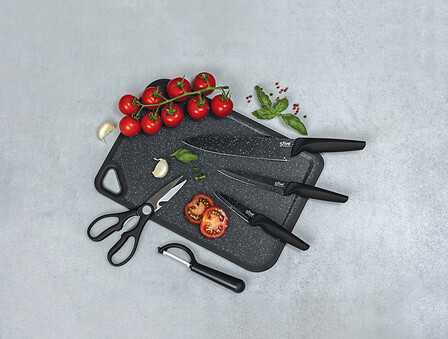 Caractère 3-messenset met snijplank en accessoires