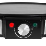 Crepe maker ADLER AD 3058 is a device that will work in most homes, You can prepare snacks for breakfast and afternoon tea as well as the main course for dinner quickly and conveniently, The device allows for smooth temperature control, and two control lamps signal when the equipment is ready for operation, Diameter heating plate 30 cm, Professional crepe maker whose non-stick coating on the heating plate, its shape, and the high rim preventing the dough from spilling will facilitate frying pancakes, tortillas, crumpets, and potato pancakes