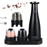 The product is distinguished by an innovative combination of three grinders in the set, The AD 4449 electric grinder is extremely convenient and easy to use, It also has some interesting features, For example, you can adjust the grinding fineness of spices freely, This is useful if one member of the household likes coarsely ground salt and another prefers finely ground pepper, In turn, the illuminated base makes it easier to control where the spices go and how much more needs to be ground, The capacity of one grinder is 150 ml, so you don’t have to worry about refilling them regularly, You charge the device with a USB cable and after 2,5 hours you can fully use its functions, There is nothing tastier than freshly ground spices and herbs,