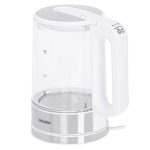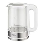 A glass kettle with temperature control is a device that should be present in every home, Using kettle, you can choose one of several temperature ranges from 60 to 100 degrees Celsius, thanks to which we can adjust the heat of the water to the type of tea or herbs brewed, The kettle is equipped with a temperature maintenance function, The elegants finish with stainless steel, a charming spout, a convenient opening handle and a rotating base make the device easier for left-handed people and children to use, Interesting accents are also different shades of water backlight depending on the set temperature and the sound signal during start-up and after boiling,