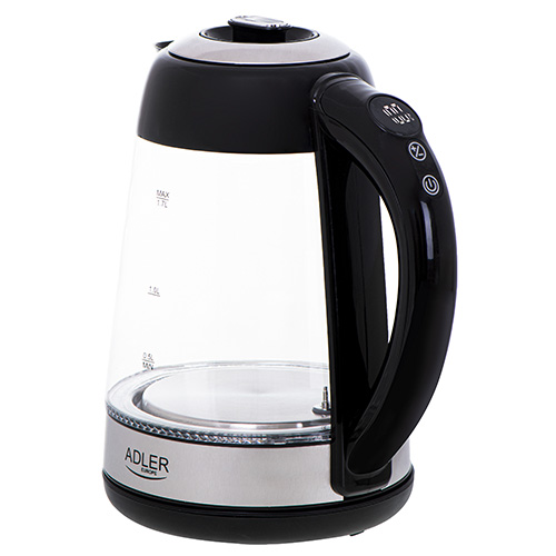 The temperature-controlled kettle allows both boiling and heating in the range of 40 to 100 degrees C, which is useful in the preparation of herbal infusions, the brewing of certain types of tea, and in other situations where boiled water would have to cool down slightly, before using it, The temperature is controlled by buttons on the kettle and shown on the LCD display, The AD 1285 kettle is equipped with a thermal fuse that prevents overheating of the device, Additionally, the user is informed about the boiling of water by an audible signal,