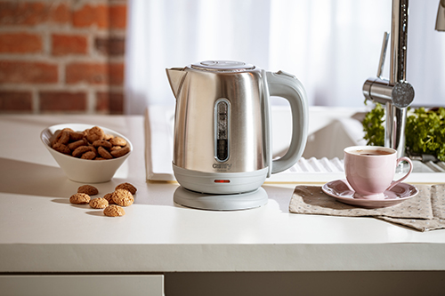 Classic 1,2-litre electric kettle is useful in every kitchen, office and students dormitory, For safety reasons it is equipped with an auto switch-off which protects the kettle from boiling dry and switch the kettle off immediately after the water boils, The kettle is equipped with a filter which stops sediments what improves taste and quality of water, Its functionality is increased by a stable base and a bright water level indicator, The kettle is made of stainless steel and is equipped with a powerful 1370-1630W heating element what makes it a sprint master in water boiling, The kettles modern design and silver housing i supplemented by control lamp,