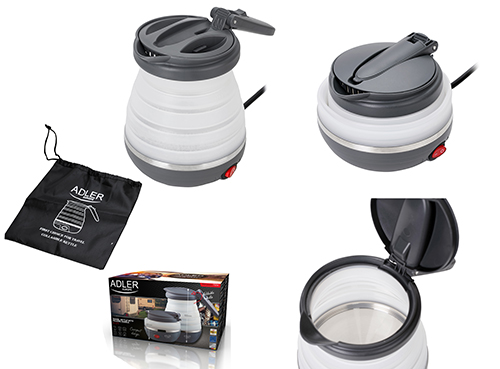 It is difficult to imagine breakfast without the favourite aromatic tea or coffee that you need to start the day with energy, On holidays it is particularly difficult to function without hot water, among other things, to prepare the characteristic of all vacations: instant meals! The portable kettle ADLER AD 1370 is an ideal product for people who spend a lot of time on a plot or on trips both for holidays and for business purposes, Thanks to modern solutions, the kettle will work both on the campsite and in the hotel room, It is important particularly when travelling, it will not take up much space in your luggage! It has been equipped with a folding handle to occupy even less space and a material storage pouch, The product is equipped with an UK type plug,