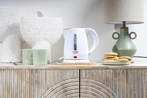 Efficient and energy-saving mini kettle, rated at 1350-1600W, It allows to boil water quickly in order to make tea or coffee for two people, Small size and law power consumption make the kettle a good choice for both travellers and people who want to save their money, The mini kettle is very convenient thanks to a stable base, big and bright water level indicator and a pilot light, Allows to boil even 200 ml of water, After boiling the water the kettle switches off automatically and protects the users safety, AD 1272 kettle has an embedded anti-calc filter which stops calcium sediments what improves taste and quality of boiled water,