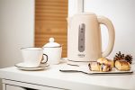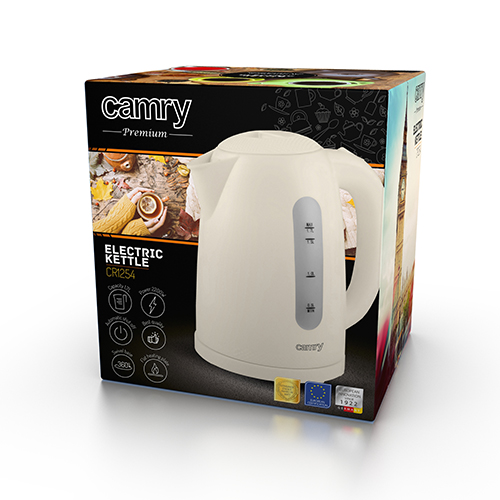 A big electric family kettle allowing to boil water for 6-7 people at one go thanks to its power of 2200 W, The kettle is equipped with a bright water level indicator and automatic switch off, so it will switch off after water boils, Boil-dry protection prevents from switching on an empty kettle, what saves energy and increases the user´s safety, Moreover, a sediment filter will provide appropriate quality of water, For the user´s convenience the kettle was equipped with a 360 degree rotary base and a flat bottom, It allows to boil up to 1,7l of water, Equipped with a heating element made of high-grade stainless steel and a pilot light informing that water has just boiled,