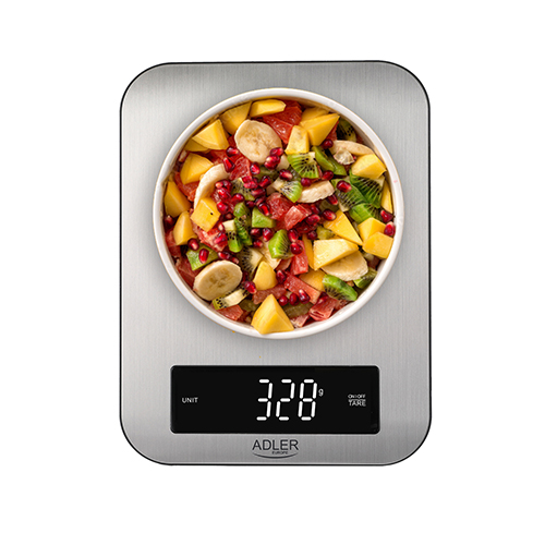 Electronic kitchen scale with maximum load till 10 kg and size of product 21cm x 16,4cm, The scale has a large and clear LED display, taring function and accuracy of 1g, The combination of a modern and elegant look with modern solutions will make it a favorite helper during baking,