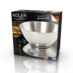 An electronic kitchen scale that has a maximal capacity of 5kg and the accuracy of 1 g, It is incredibly useful when one prepares a dish that require very strictly defined proportions of the products, It allows to precisely define the quantity of even really small items, It also answers the needs of those people who wish to verify the magnitude of their meals, for example because of health issues, Thanks to its small size the kitchen scale is easy to store and to be moved from one place to another, It has an option to choose to turn it off automatically or manually and is equipped with a very legible screen,