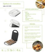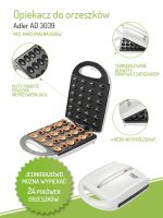 The AD3039 is aimed to baking cookies in the form of nuts filled with cream according to sweet or dry taste, XL size allows to bake up to 24 half-peanuts in one cycle, Bakelite housing, thermo-insulated handles and non-stick coating of the cooking plates make the product comfortable, Baking one batch of cookies will take up to 2 minutes becouse of high power 1600W,