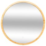 Round bamboo wall mirror with LED diam 57 cm
