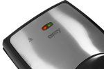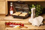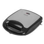 An useful sandwich toaster that has 1500W of power, It allows to prepare 4 sandwiches at the same time, The sandwiches will be divided into 8 pieces shaped as triangles, A special coat at the heating plates prevents the food from sticking to them, That is why keeping the device clean is very easy, A thermostat signalises when the plates are sufficiently heated up and controls the temperature and keeps it at a steady level during the whole toasting process This way the sandwiches are crispy and gold, The sandwich toaster can be stored in a vertical position – all for the user´s comfort,