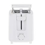 An efficient 1000 W toaster in which two toasts at a time can be prepared, The browning adjustment knob allows to prepare toasts the way one likes the best, Thanks to that they are exactly as crispy as they should be, The crumb tray helps in keeping the device, as well as the place where one prepares a meal, clean, When the toaster is on its housing remains cool – this is one of the factors that increase the safety of operating the device, One can stop the browning process using the CANCEL button, The toaster has also a bonus function increasing its utility – a grill to heat up bread rolls,