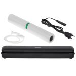 The Mesko 4492 vacuum sealer allows you to hermetically seal your products, which is particularly useful in storing food, Hermetically sealed products will be protected against losing their flavour and aroma, and will remain fresh for much longer (up to 5 times longer compared to the traditionally stored ones), Thanks to its compact size, the sealer will be a perfect choice for households, shops, or food sale stands, Vacuum power is 12L per minute, Maximum width of the bag is 30 cm but we suggest to use bags not wider than 28 cm,